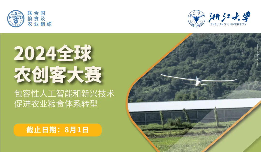 2024全球农创客大赛于今日正式启动公开招募。本届大赛由联合国粮食及农业组织、浙江大学联合举办。大赛主题为:包容性人工智能和新兴技术促进农业粮食体系转型。