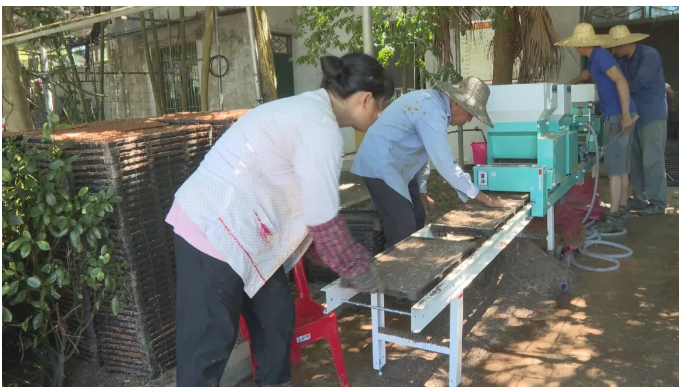 屯昌县农科所所长 李世杰:机械育苗时间比较短,12天到13天左右(就能完成育苗),比如说5个人一天就可以育二百多亩的秧盘,如果是人工育苗的话要10人育两天,还有一个它的成活率特别高,可以达到98%左右。