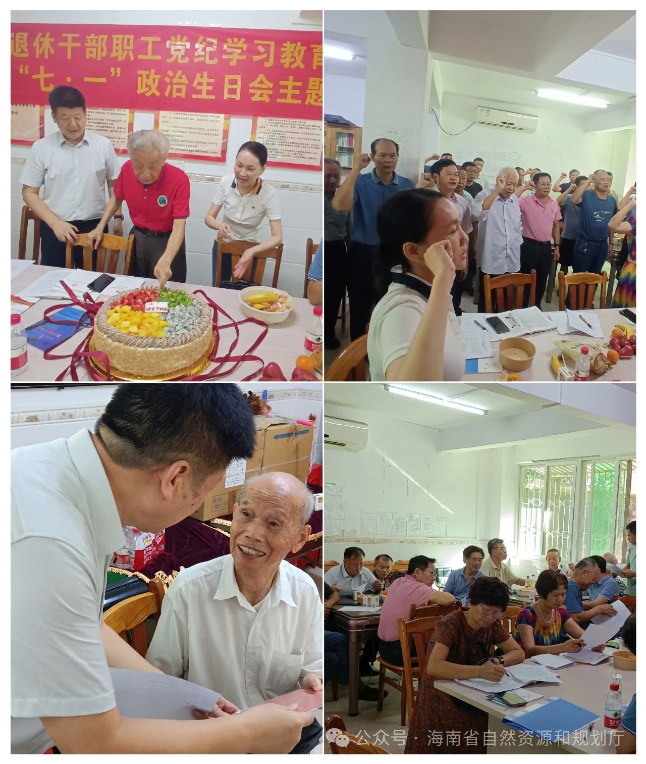 6月30日,省资规厅组织离退休干部党员40余人,开展“七·一”政治生日主题党日活动。活动中,与会全体党员重温入党誓词,铭记初心使命,再一次对党作出庄严承诺。同时还分享特殊“生日会”蛋糕、举行“光荣在党50年”颁发纪念章、颁发政治生日贺卡、开展问卷调查等活动。