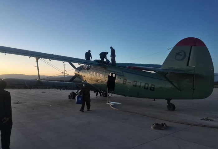 为做好蝗虫监测防控工作,有效遏制蝗虫危害蔓延,保护师市农牧业生产安全和生态安全,师市对165、166、167、168团进行飞机喷药防治作业。此次飞防专门选用生物制剂环保型农药,提前发布通知,告知职工群众进行防护,在机场安排急救医护人员、安保人员和专业技术人员,避免对飞防区域的环境和人畜造成不良影响。飞防过程中地面实时监控作业飞机飞行轨迹、高度、喷洒幅度和覆盖严密度,技术人员严格按照操作规程进行作业,确保农药喷洒均匀,天空、地面密切配合保证飞防工作有序、高效进行。