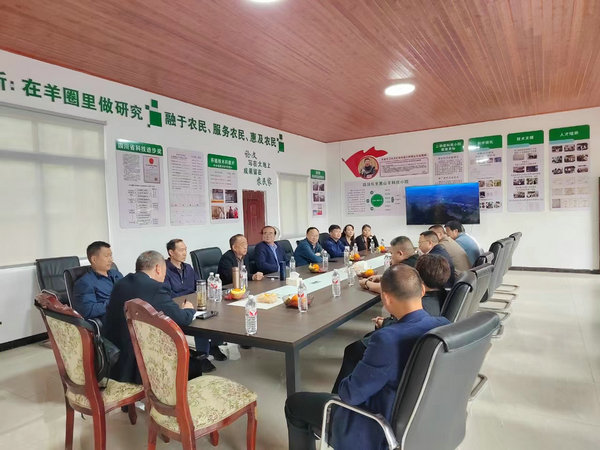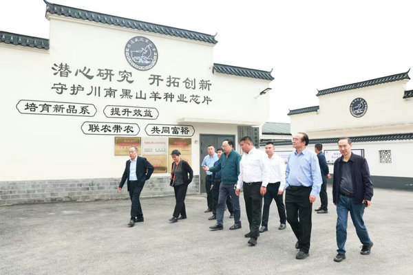 朱会长一行参观了乐至县现代畜禽种业园区羊基地、八谊农业开发有限公司、川宗羊业有限公司,听取了公司负责人关于乐至黑山羊遗传资源保护与利用情况、标准化规模养殖现状、产业发展模式、产业链延伸情况等方面的汇报。乐至现代畜禽种业园区肉羊现代种业创新育种基地是在建中的省级重点育种基地,规划年出栏种羊6000只、商品羊4800只,未来将成为川中黑山羊(乐至型)核心科研育种平台;川宗羊业有限公司是 农业农村部协同推广示范基地,创新"借羊还羊""寄养代养"模式,带动100余户农户年均增收超万元,实现企业增效与农户增收双赢;八谊农业开发有限公司是省级原种场,现存栏保种群体300只,承担川中黑山羊(乐至型)遗传资源保护重任。