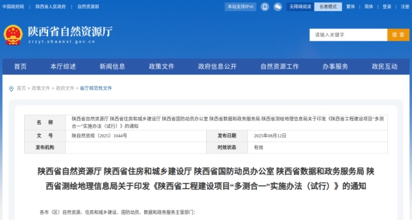 近日,省自然资源厅联合省住房和城乡建设厅、省国防动员办公室、省数据和政务服务局、省测绘地理信息局等5部门,制定出台《陕西省工程建设项目“多测合一”实施办法(试行)》,标志着我省工程建设项目领域“多测合一”改革再深入、再升级。
